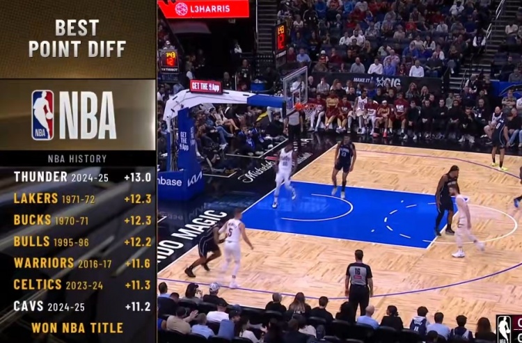 2025-02-26 16:21:05第2-6均当季夺冠!本季雷霆场均净胜13分暂列历史第1 骑士第7