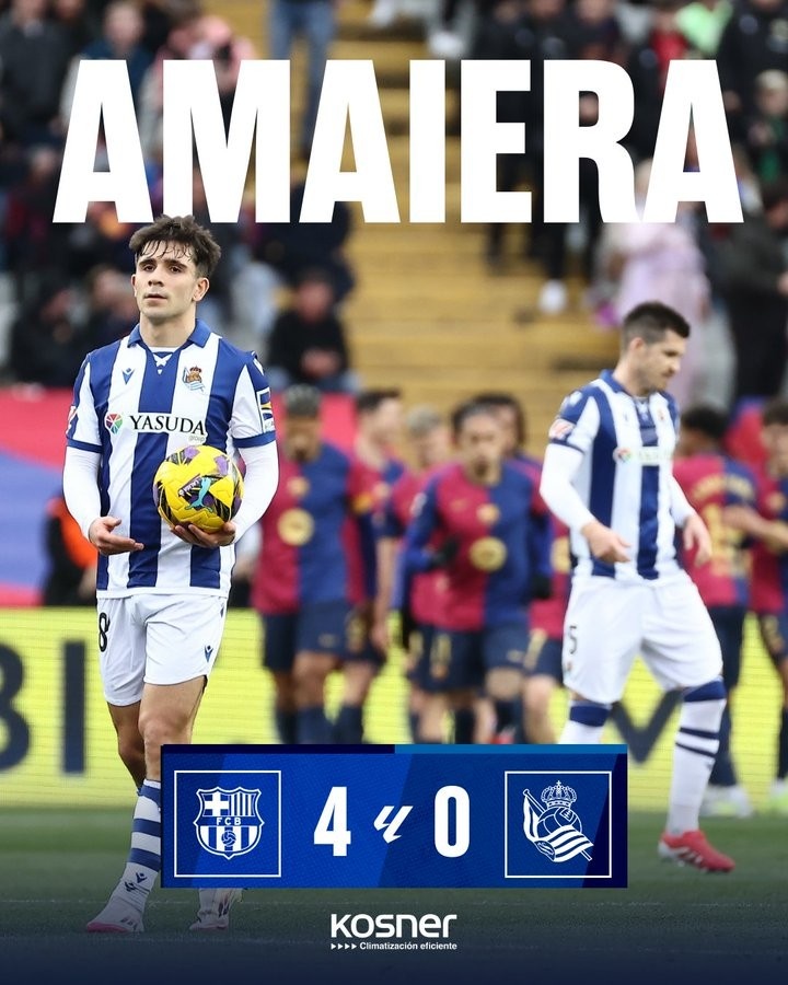 3月3日讯 皇家社会在本轮西甲客场0-4惨败巴萨,他们全场未能完成任何射门。